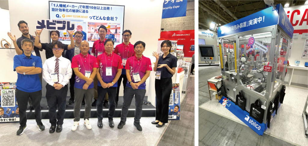 2025年10月1日(水)~3日(金)、インテックス大阪にて開催された「第28回 ものづくりワールド[大阪] 設計・製造ソリューション展」において、ミスミ様の「meviy(メビー)」ブース内に当社の箱包み装置を展示いたしました。