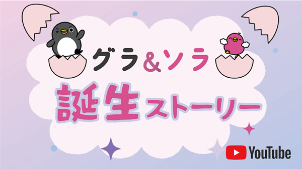 当社の公式キャラクター「グラ&ソラ」がどのように誕生したのか、キャラクターに込められた思い、名前の由来などを、1分の動画でご紹介します! ぜひご覧ください。(画像をクリック)